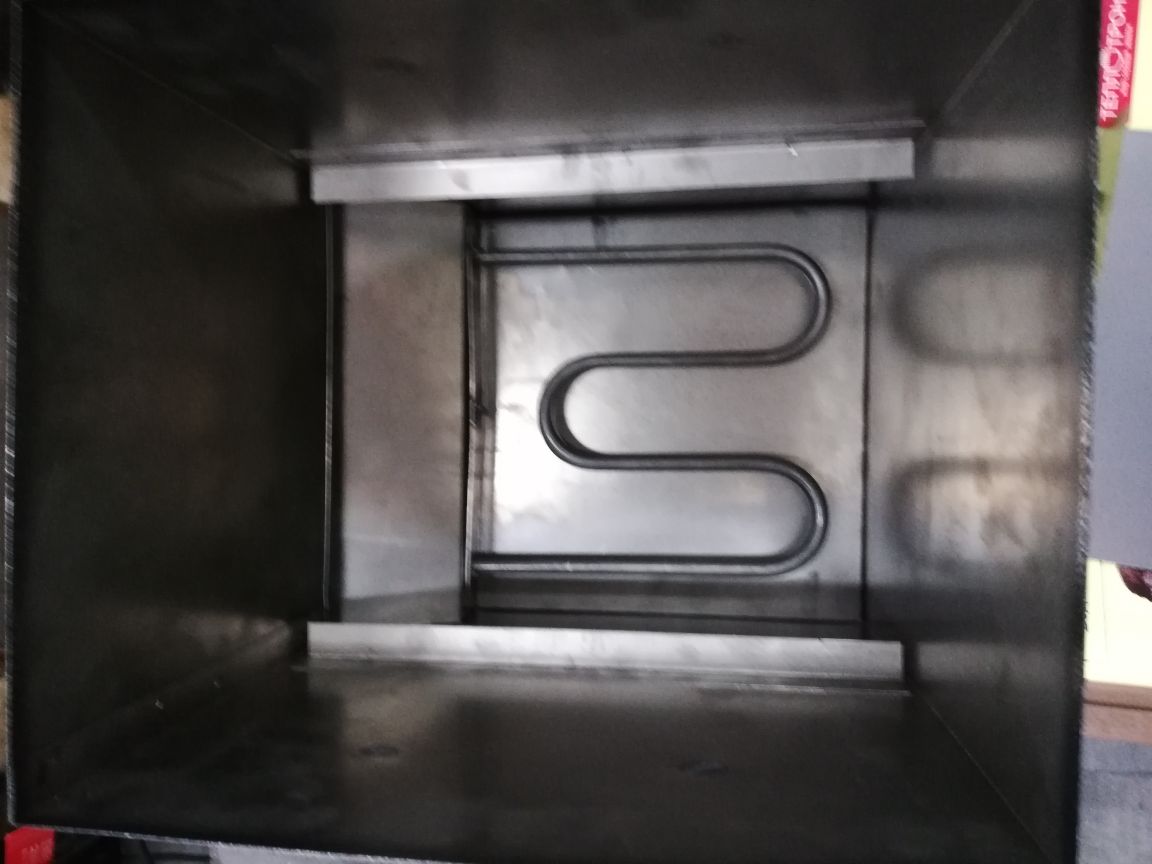 На дне корпуса установлен нагревательный элемент (ТЭН), который защищен от стекающих капель жира специальным поддоном. На внутренней поверхности корпуса расположены уголки для размещения решеток.