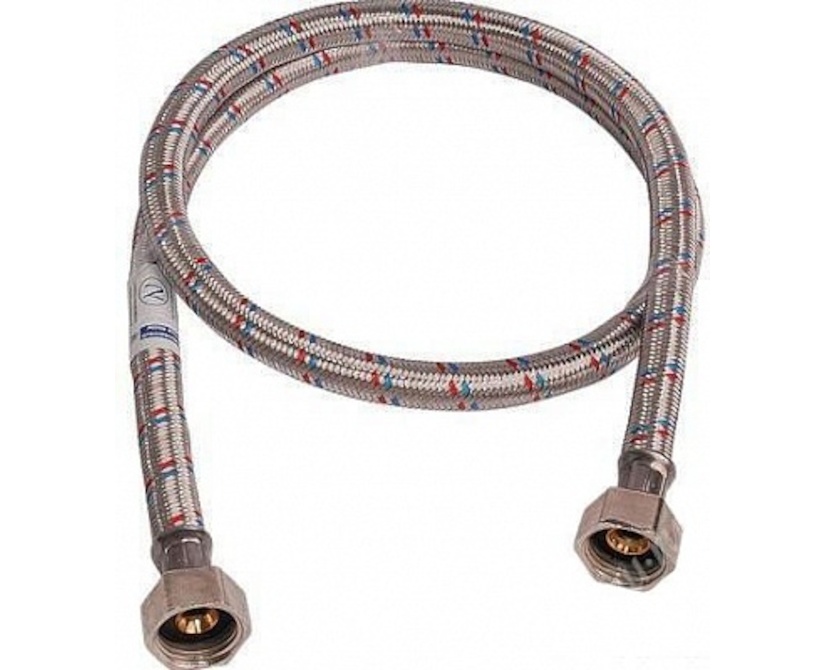 Подводка для воды представляет собой резиновый шланг в металлической оплетке (обычно стальная нержавеющая нить). Задача металлической оплетки - защита резинового шланга от внешних механических воздействий и гидравлических ударов. Присоединение подводки к системам водоснабжения выполняется одним из двух способов: с помощью штуцера (вкручивается в подключаемый прибор) или накидной гайки (навинчивается на торец трубы с резьбой). Резиновый шланг, использующийся при производстве водяной подводки, изготовлен из этиленпропиленового каучука ЕРDM. Это "нетоксичная резина", которую применяют для питьевого водоснабжения. Вплетенные в подводку красные и синие нити означают, что подводку можно использовать как для холодной, так и для горячей воды.