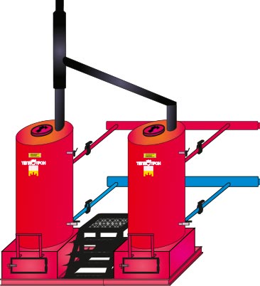 Для  монтажа модуля из двух котлов  и врезки его в систему отопления, кроме самих котлов, дополнительно потребуется ряд комплектующих и изделий необходимых для нормального и сбалансированного функционирования обеих котлов. Это рама, объединительная «гребёнка», площадка, дымовые трубы, запорная арматура, асбест и т.д. Полный перечень необходимых изделий и комплектующих , требующихся при стандартной схеме монтажа, приведён ниже. В конкретном нестандартном случае, перечень может быть несколько изменён,  дополнен или изготовлены нестандартные изделия.  Для упрощения комплектации модуля из двух котлов,  при стандартной схеме монтажа,  завод-изготовитель подготовил  и изготовил полный перечень  необходимых изделий и комплектующих и предлагает  их покупателю комплектно в составе модуля. Таким образом, двойной модуль  Теплотрон – это, своего рода «конструктор», включающий в себя все необходимые комплектующие для монтажа двух котлов Теплотрон-«Классик».