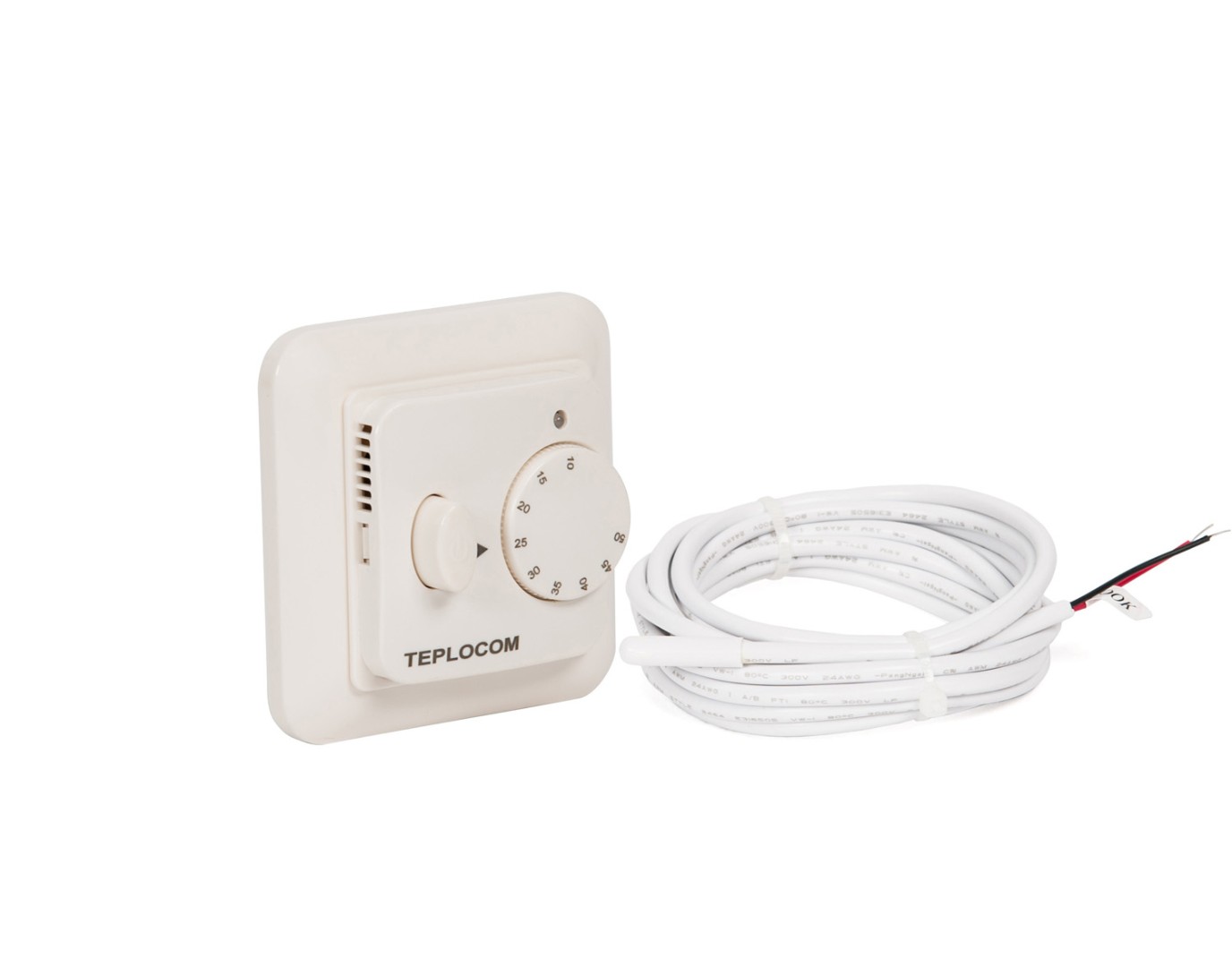 TEPLOCOM TSF-220/16A представляет собой прибор, устанавливаемый в обыкновённую внутреннюю электромонтажную коробку рядом с любой удобной розеткой. Высота установки — от 50 см. Если в доме есть дети - учитывайте это, однако имейте ввиду, что длина питающего провода от термоматов TEPLOCOM МНД и провода термодатчика составляет 2 метра. На лицевой панели TEPLOCOM TSF-220/16A есть градуированный диск управления (ручка) и сигнальный светодиод красного цвета, включающийся при подаче напряжения на тёплые полы, и мигающий в случае аварии термодатчика. Существующая мощность подключаемой нагрузки составляет 16 А, что позволяет подключать любые комплекты тёплых полов из линейки TEPLOCOM МНД.