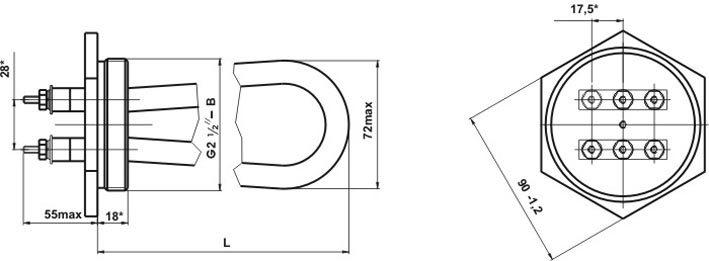 Элек. ТЭН (блок) СЭВ-3 (60 В 13/1,0 J 220) G 2 ½ 75мм Нерж